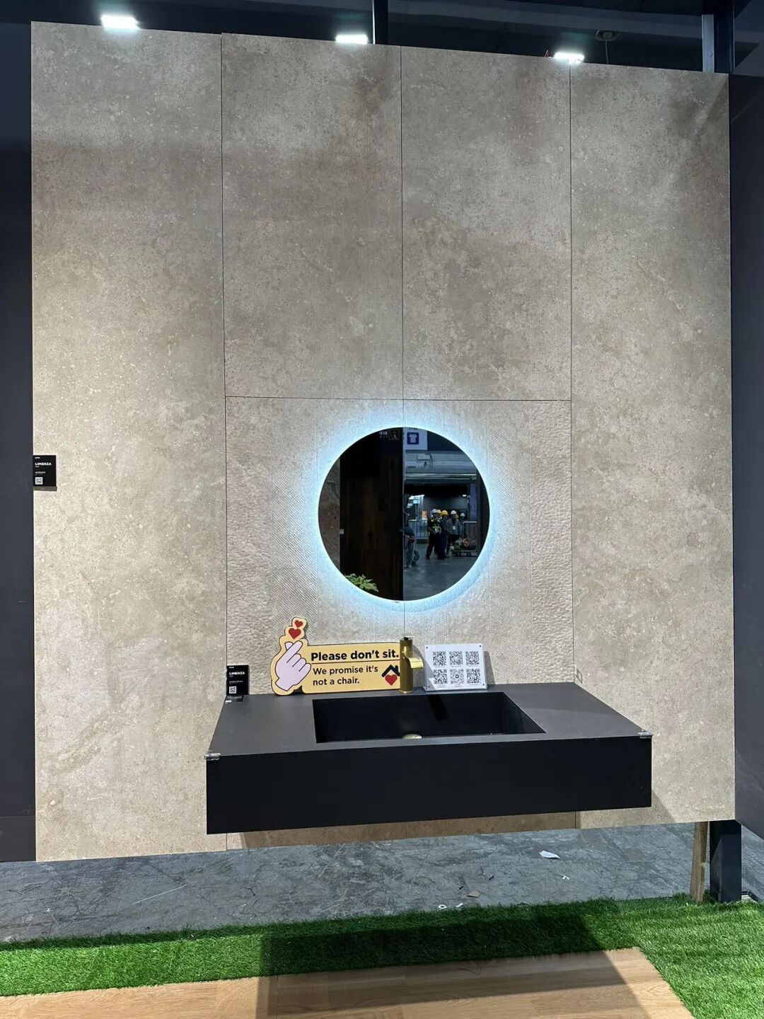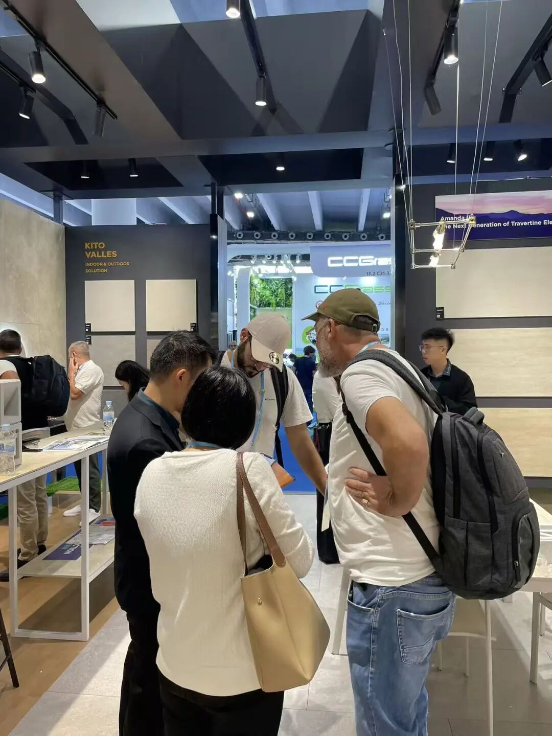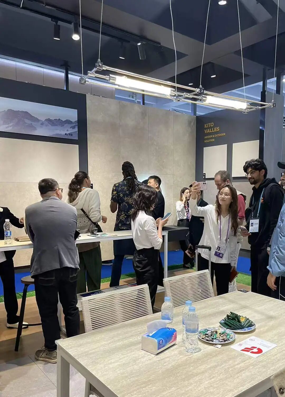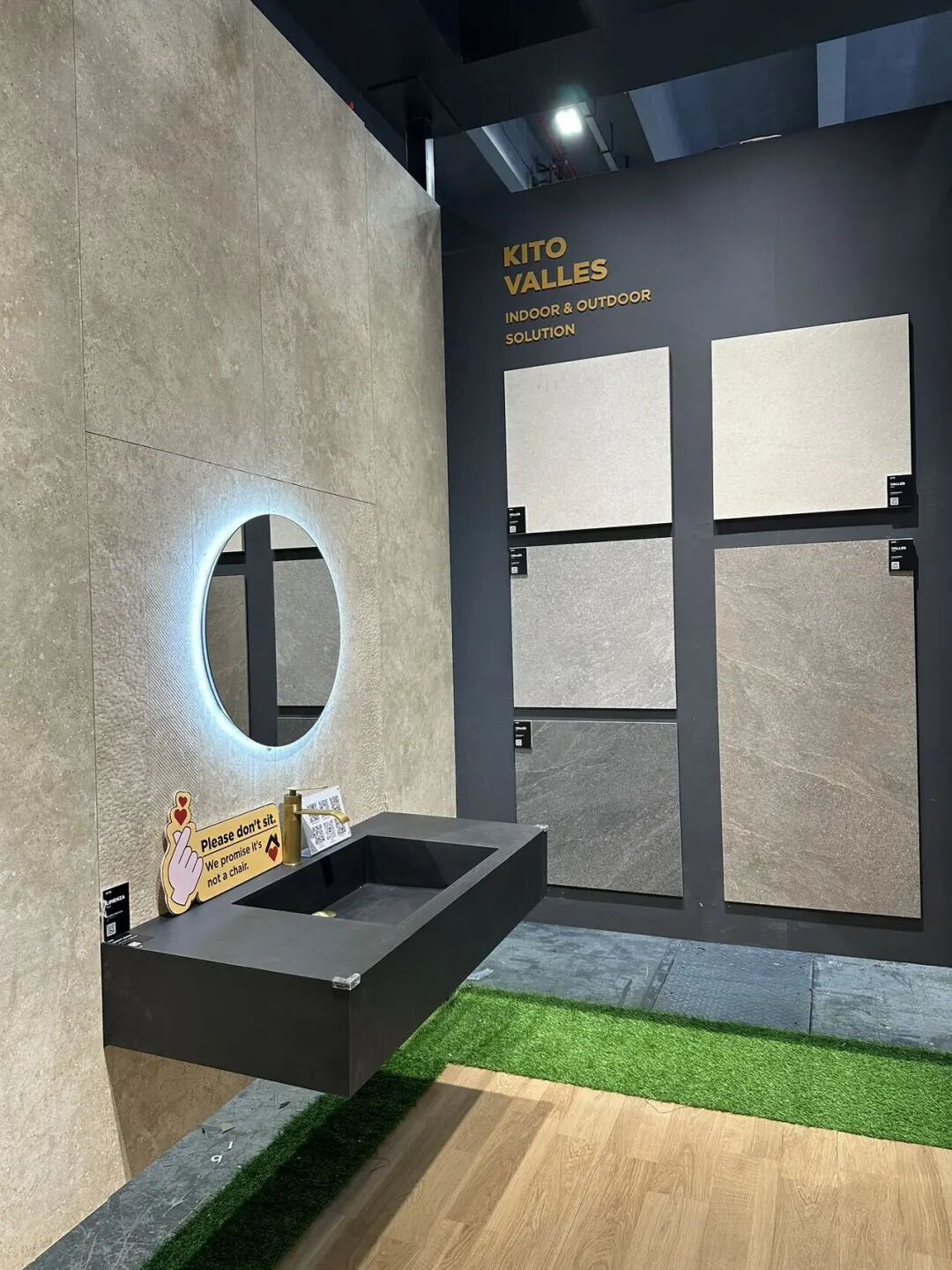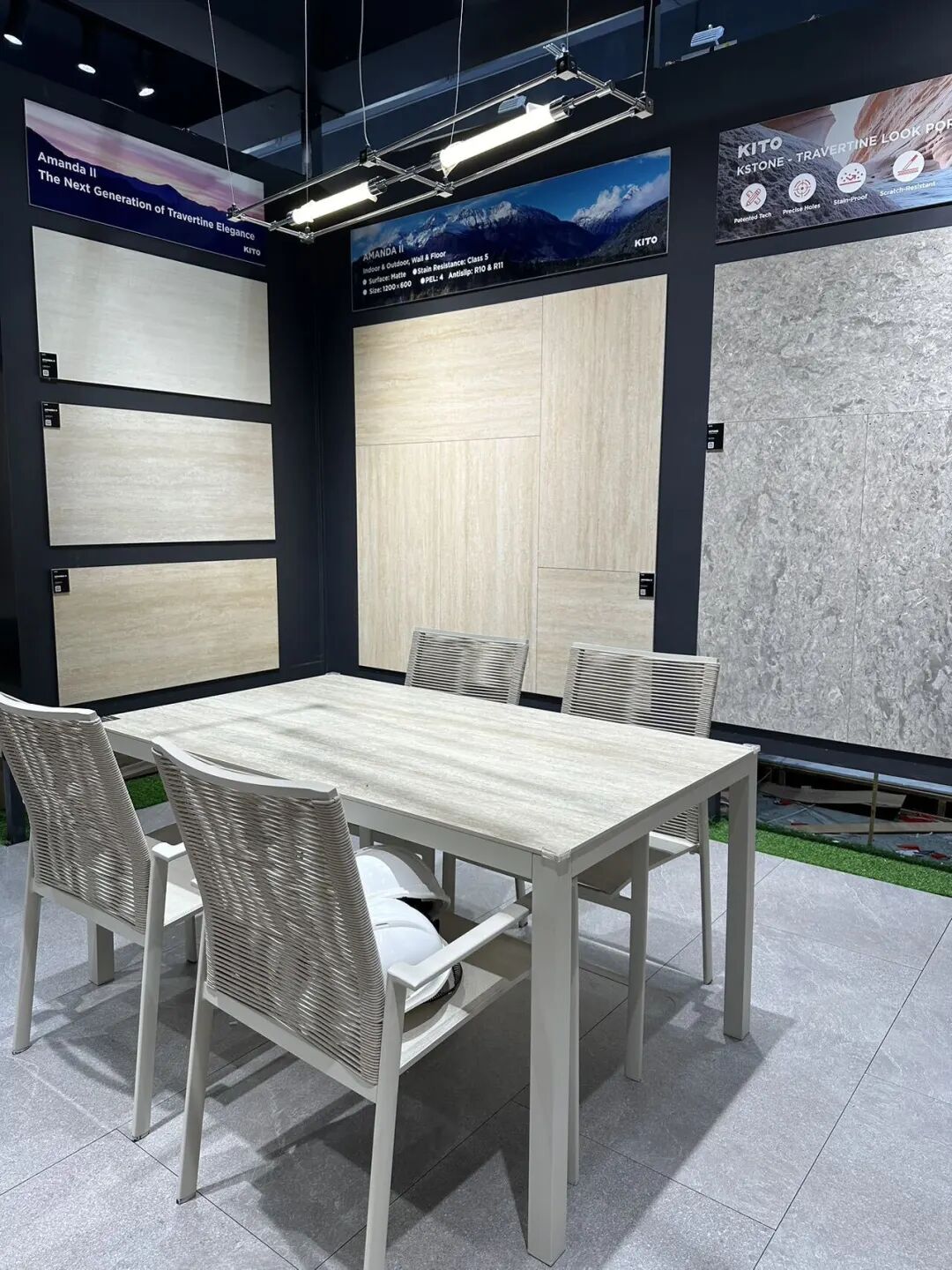 A key highlight was the new 600x1200mm KITO Travertine (Kstone Series). Utilizing a world-leading, proprietary technology, it captures the authentic visual and tactile feel of natural travertine while far surpassing it in performance and durability.