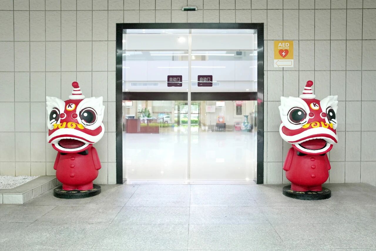 Two golden lions, also formed from foamed ceramics, are particularly charming. The material's superb plasticity captures every detail, preserving a ceramic feel while perfectly expressing the spirit of Foshan's lion dance. These unique greeters add a lively and playful touch to the space.