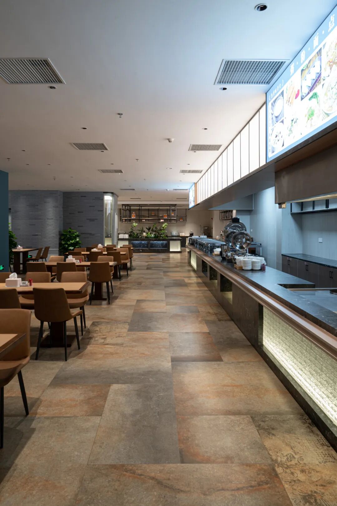 Here, 'Story Ⅰ' and 'Keywood' tiles create a relaxed and comfortable vibe, aligning perfectly with the modern pursuit of a pleasant dining experience. Underfoot, the tiles act as an invisible filter, balancing the warmth of furniture, the vitality of plants, and the cheerful chatter of staff.