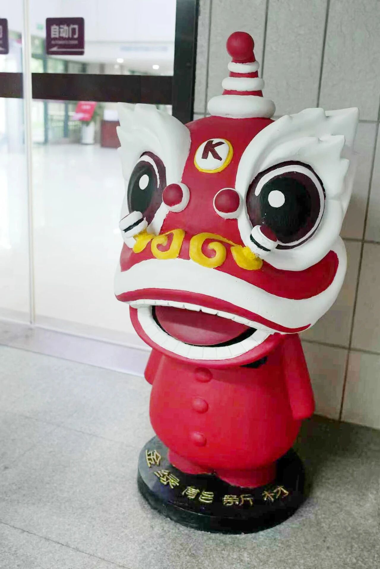 Two golden lions, also formed from foamed ceramics, are particularly charming. The material's superb plasticity captures every detail, preserving a ceramic feel while perfectly expressing the spirit of Foshan's lion dance. These unique greeters add a lively and playful touch to the space.