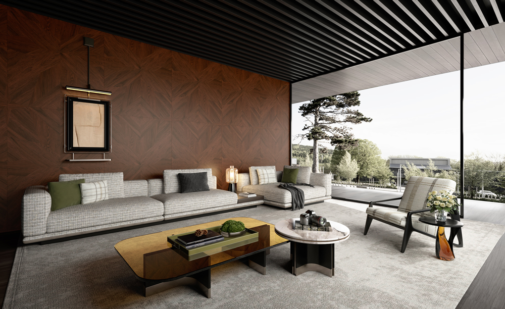 Infused with authentic Italian design DNA, the Majestic Oak series masterfully unites natural wood grains with artistic aesthetics. Deep burgundy and smoky brown tones intertwine through vertical striations and geometric inlays, creating a dynamic yet refined visual rhythm.