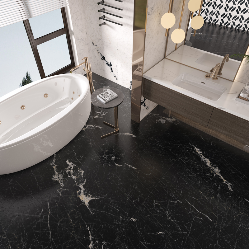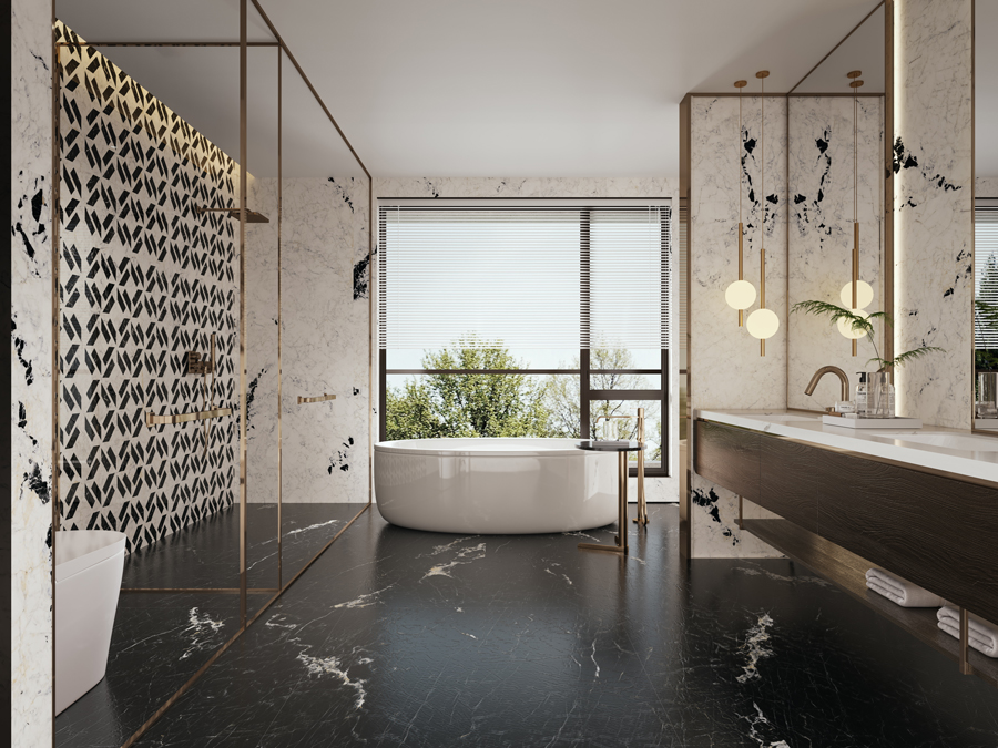 Available in black and white, this Paonazzetto wall tiles collection can be used in large-scale applications to create a serene ink wash atmosphere, or combined through contrasting patterns to form striking visual focal points. It adapts seamlessly to a variety of design styles.